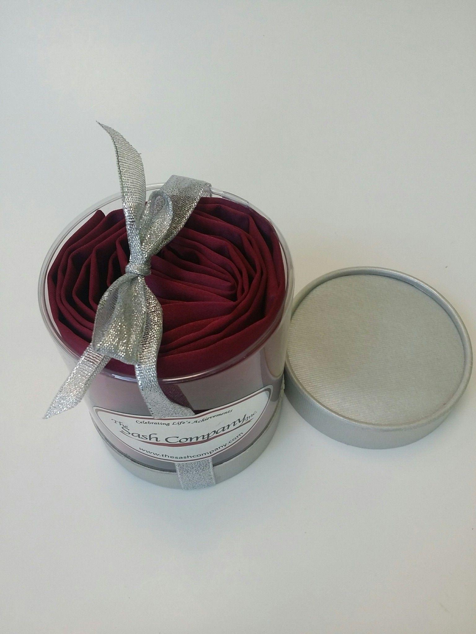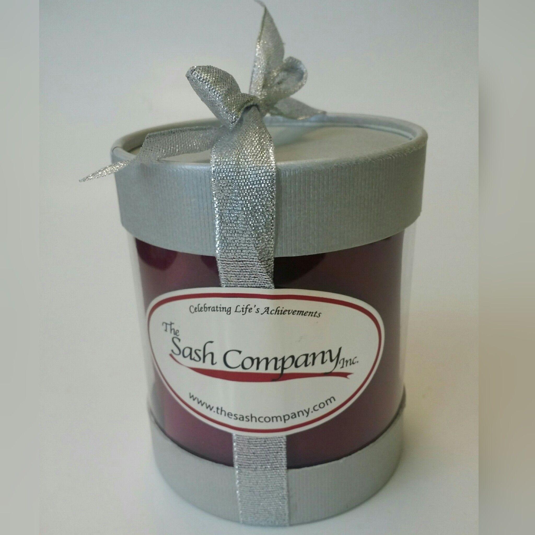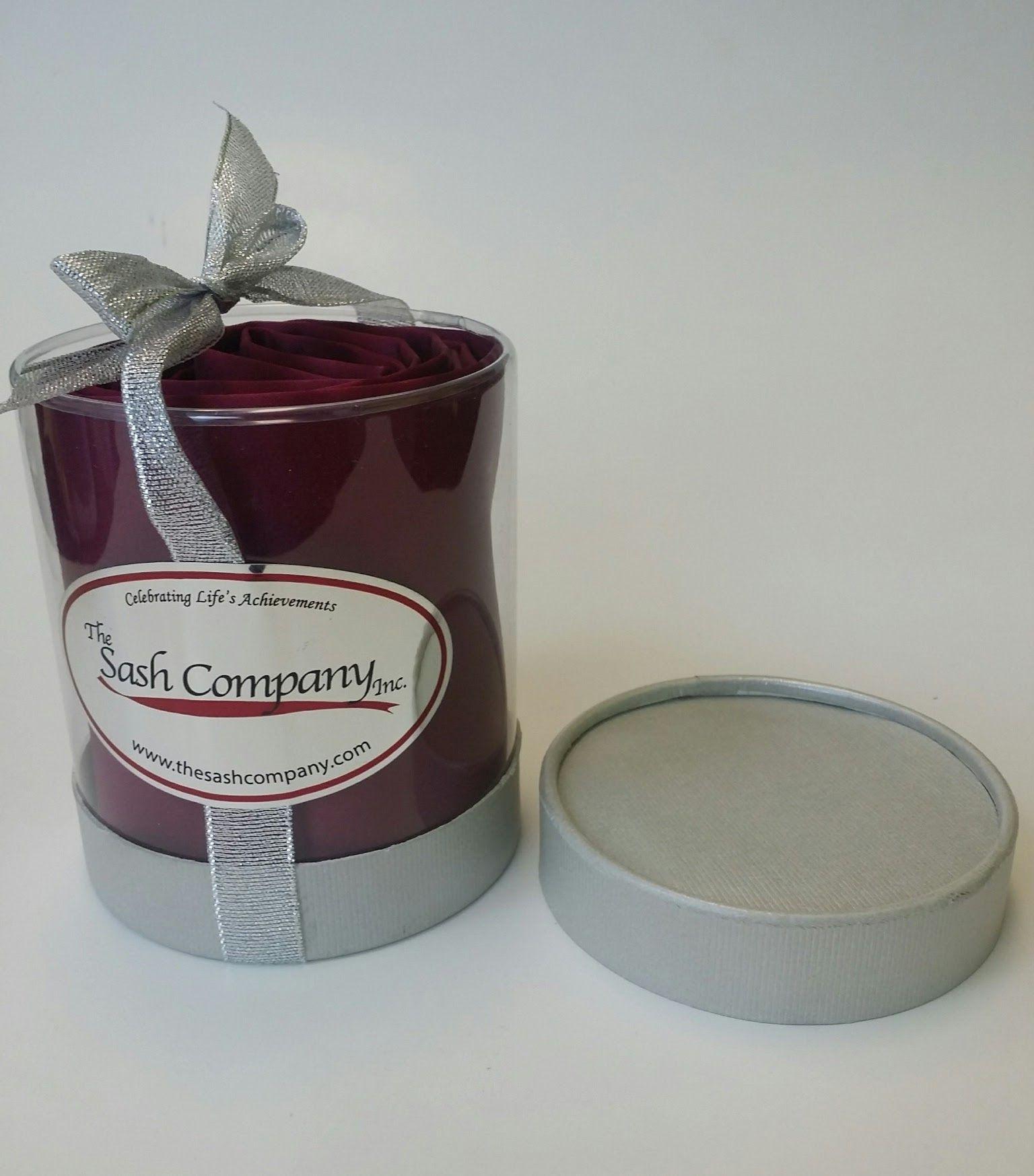 Add a finishing touch with these High Quality Round Gift Boxes. Stores our standard size Sashes with closure lid, ribbon bow. Lets your sash color shine! Clear cylinder with silver top and bottom lids. Measures approx. 4 1/2" High by 3" Wide.