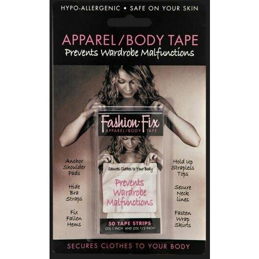 From the makers of the original fashion tape with over fifty years and used by Pageant experts backstage for decades to prevent sashes from slipping off the shoulder during swimsuit and evening gown competitions, and any other time you need your sash to stay put. Fashion-Fix™ Professional Apparel and Body Tape also hides bras straps, secures necklines, fixes fallen hems, holds up strapless tops, keeps scarves in place, adheres body jewels and anchors shoulder pads.