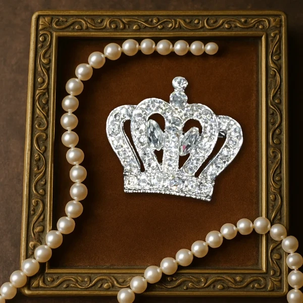 This mini Royal Crown Brooch Pin is filled with 40 pave crystals and two marquise crystal cut stones. It's an little over an inch wide and one inch high. Silver tone and pin back. Ideal for your pageant banner, sash or stole. Makes a great gift!