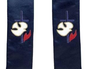 - Navy Blue Ultra Satin Holy Spirit Dove Clergy Stole embroidered with Pentecost design