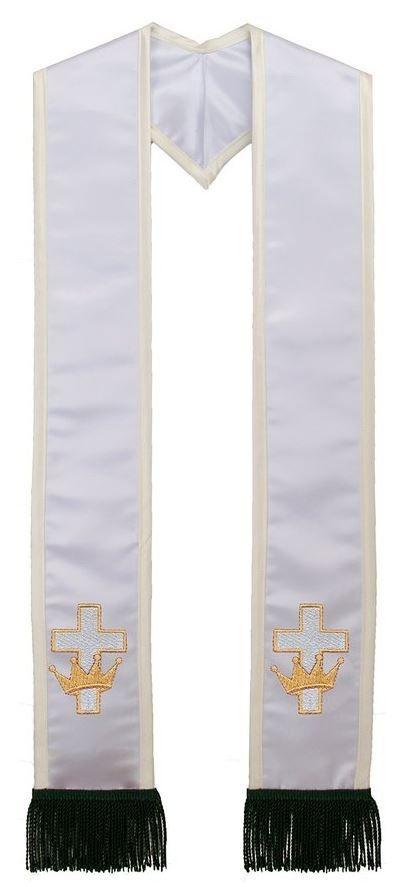 This premium Ultra Satin White Clergy Stole embroidered with a Crown and Cross is ideal for one who is In His Service, a Minister or Pastor, Bishop and Chaplain, Deacon and Deaconess. Suitable to be worn for church services, a wedding, baptism, dedication and communion.