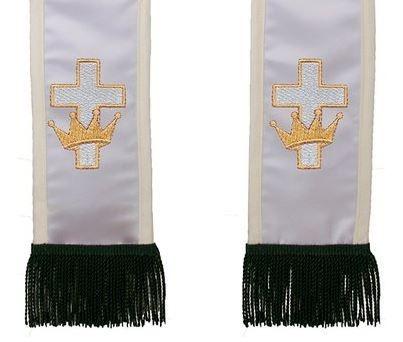 - Crown with Cross White Clergy Stole matching Border and Jet Black Fringe