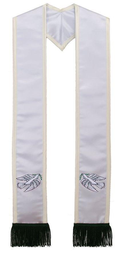 This premium Ultra Satin Dove of Peace is embroidered on this beautifully custom made Clergy Minister Stole. Ideal for Baptism, Weddings, Burials, Memorials, Celebration of Life Ceremonies and Dedications.