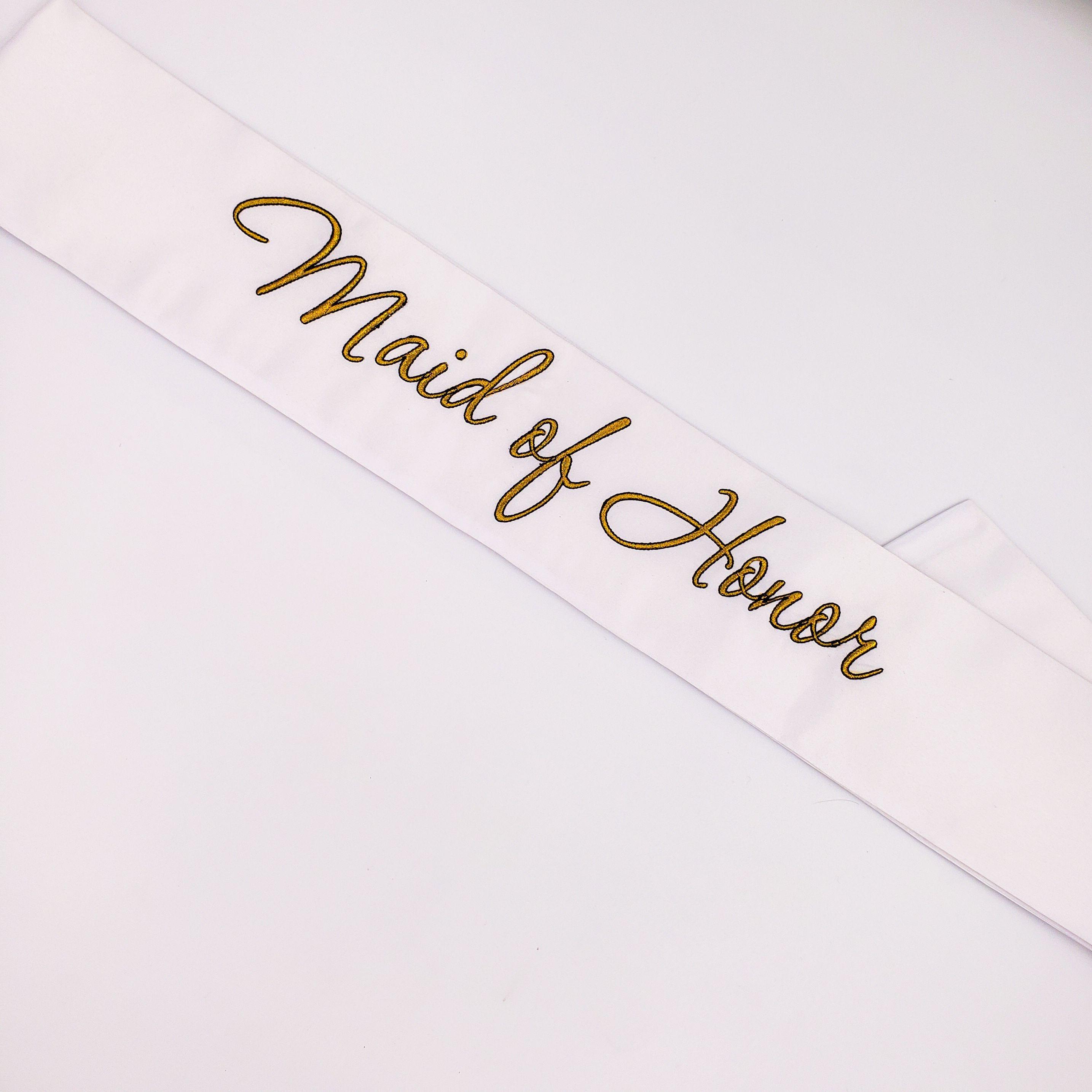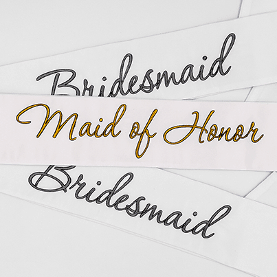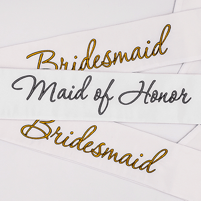 These Sashes are the perfect accessory to any of the Bride to Be versions of The Glamour, designed by Miss America 2017 Savvy Shields! Make sure the entire wedding party from the maid of honor to bridesmaids to the flower girl can stand out while celebrating your shower, bachelorette weekend, rehearsal dinner, or any other wedding related get together! Every sash in the Glamour Collection features gold embroidery and most variations have an optional row of Swarovski Crystals.