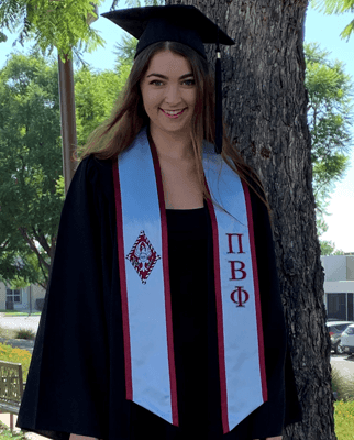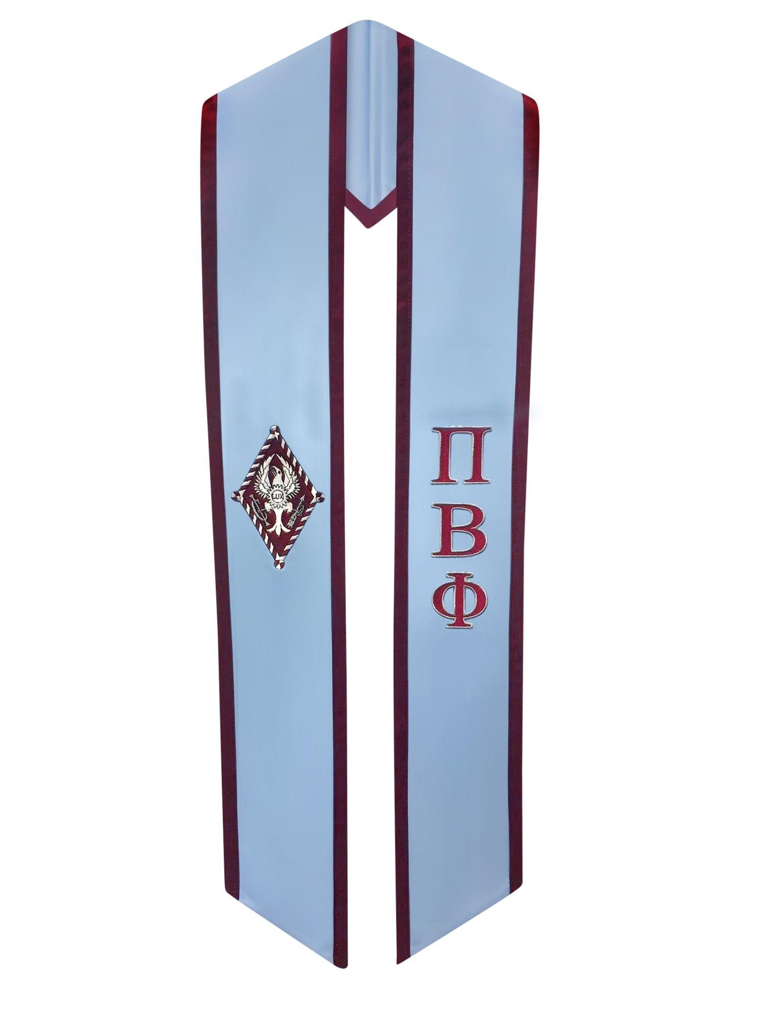 This Graduation Stole is custom made from Ultra Satin with the Pi Beta Phi Fraternity - Sorority Greek lettering and it's symbol logo. This handmade embroidered chiseled cut Fraternity/Sorority Stole is officially licensed using the official seal and colors. Share your Pi Beta Phi pride!!