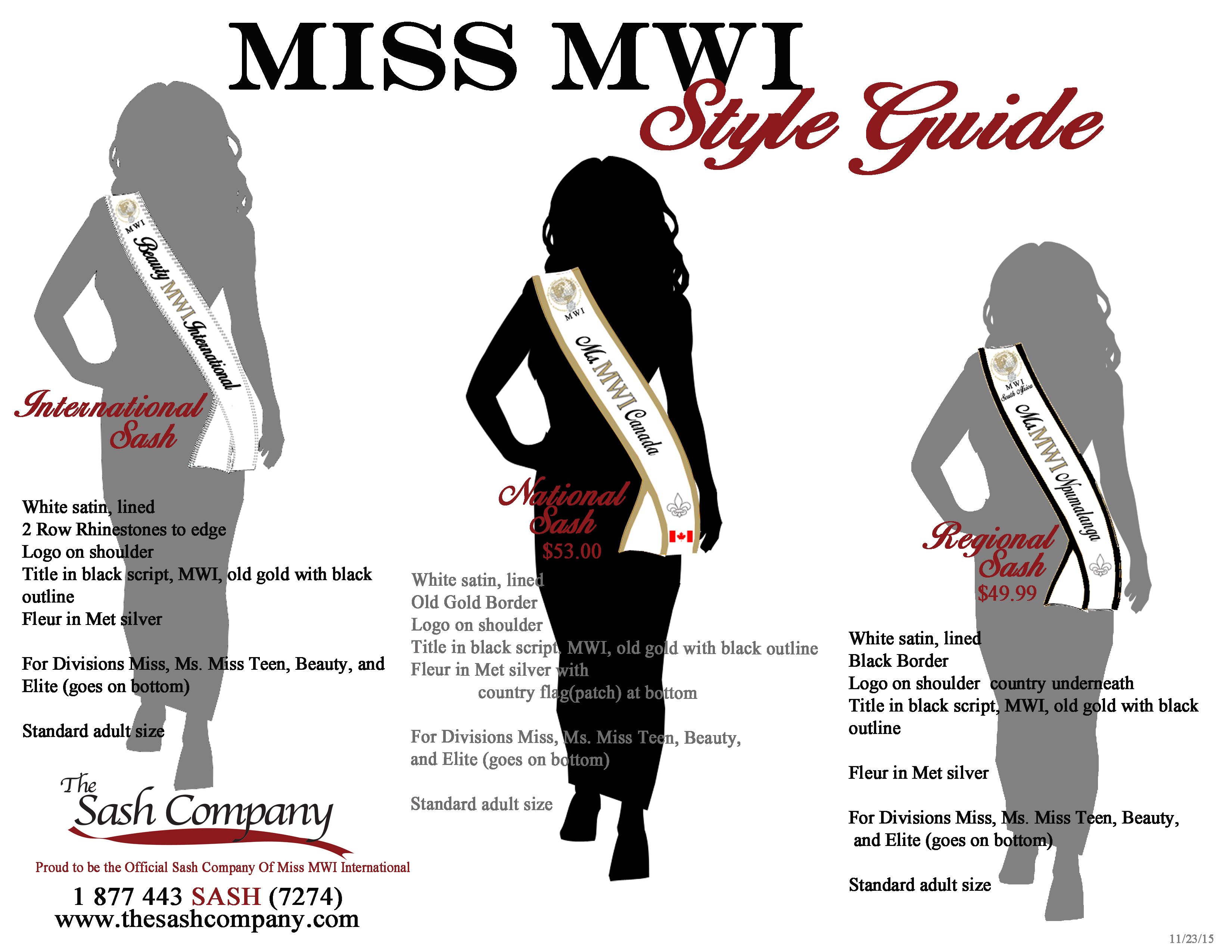 The Regional Miss MWI sash collection continues the regalia.
