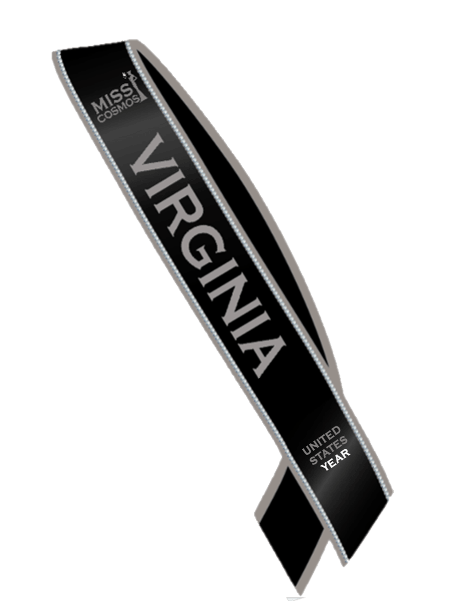 The sashes for Miss, Mrs., Ms., Ms. Elite, Teen and Jr. Miss divisions will be made with our Black Satin and adorned with a single row of crystal rhinestones on the front of the sash and beautifully lined with Grey trim. The embroidery will be a compilation of Grey thread for the title and country with the year in Metallic Silver to make up this custom stylized font. The Miss Cosmos logo will be in Grey thread and placed on the shoulder with a detailed Metallic Silver Star.
