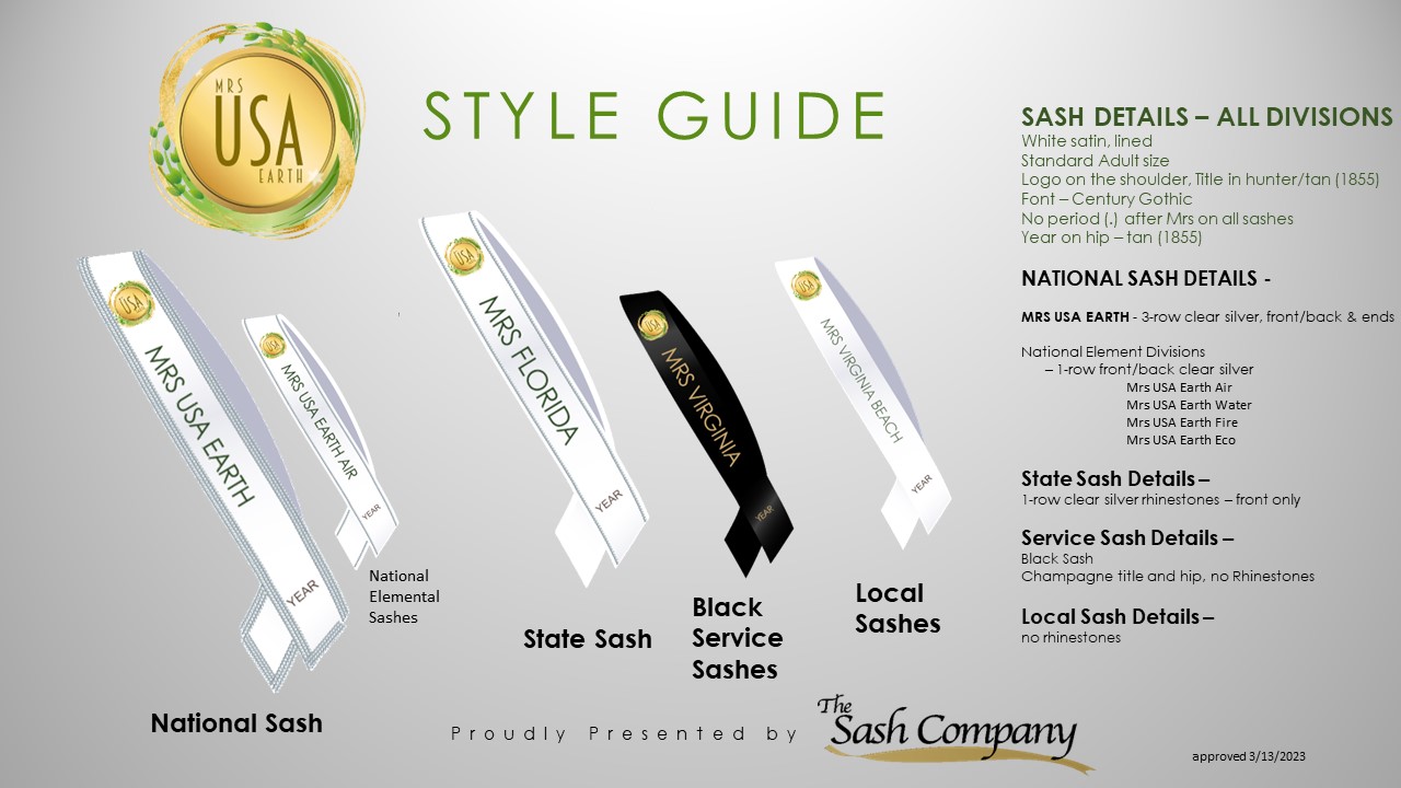 Mrs USA Earth proudly provides state and national representatives a means to empower themselves, celebrate each other, inspire those around them, and advocate for a common good. We only have one home, and we must do our part to keep it healthy for generations to come. Our delegation—past, present, and future—understands this importance. Each woman utilizes her crown and platform to amplify this message and spark a global impact. The Mrs Earth USA National Sash Collection features an exquisite white custom competition sash adorned with three rows of stunning Swarovski crystal rhinestones embroidered with the MRS Earth USA logo and year. It features a velcro fastener for easy fit and removal. The Sash Company takes great pride in making beautiful sashes and stoles with the highest quality material to help you celebrate the most pinnacle-peak moments in someone’s life.